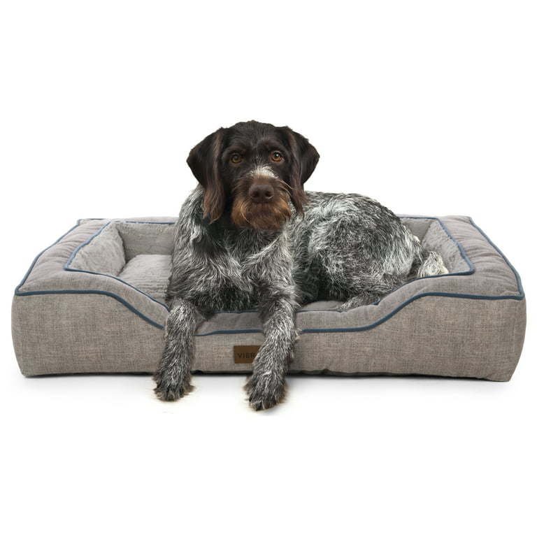 Bolstered Bliss Mattress Edition™ is a large deluxe dog bed containing high performance human-grade mattress materials, wide, bolstered walls and large sleep surface ideal for multiple sleep positions and full body support. With a lowered front entrance, allowing for easy entry and exit, it is an ideal pet bed for dogs of all ages and multiple pet families. A comfortable pet bed for restful sleep or a lounge area in the home, crate, or car. Comes in a home décor friendly fabric. Sizing: 36 inches x 26 inches x 6 inches. Ideal for large pets, up to 70 lbs. Mattress Edition™ pet beds are part of Walmart's Closed Loop Program and contain recycled human-grade mattress materials and post-consumer recycled fibers, keeping thousands of mattresses from landfills annually and providing premium full body support and comfort for pets of all ages and sizes. Vibrant Life™ Bolstered Bliss Mattress Edition™ pet bed keeps the equivalent of two hundred 16.9 oz plastic water bottles from our environment, doing our part one pet bed at a time.