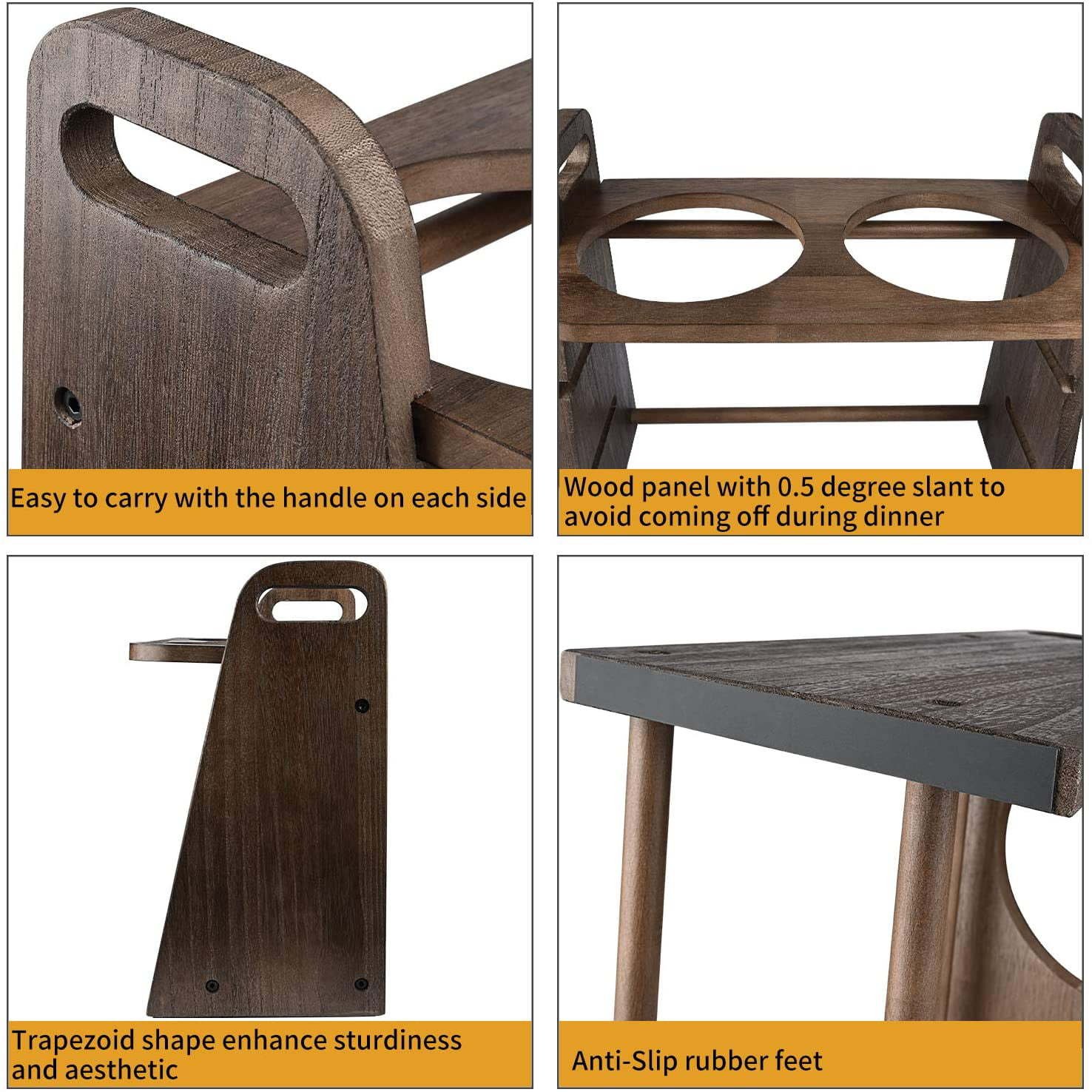 Torched craft only, no any paint, no any odd smell, natural wood grain makes friendly feeling, helps your pets more easily get close and used to it. Trapezoid feeder with two round wood supporting rods strengthens sturdiness, attractive modeling of raised dog feeder. Overall size l 16.7x w 8.6 x h 15.5 inches. The dog raised bowl has 3 adjustable heights, 4', 8' and 13', it is suitable for different breeds of dogs of various heights, meanwhile, the raised feeder will also help improve our pet's posture while they are eating, reducing the strain on their joints and also promotes digestion, reducing bloating and neck strain while feeding.