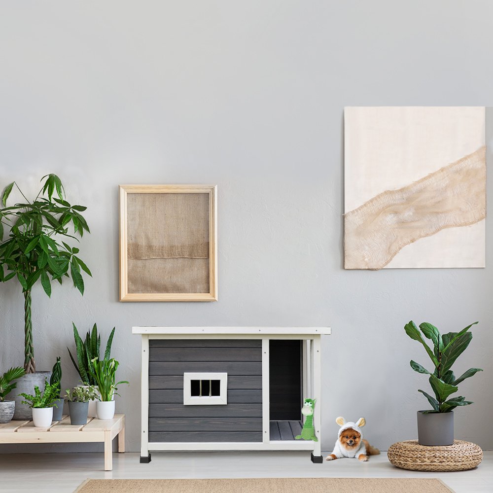4.ALL-WEATHER CONSTRUCTION: The roof of this doghouse is waterproof asphalt designed to protect your pet from inclement weather and can be comfortable. The roof can withstand most weather conditions, like rain, snow, sun, wind and more.