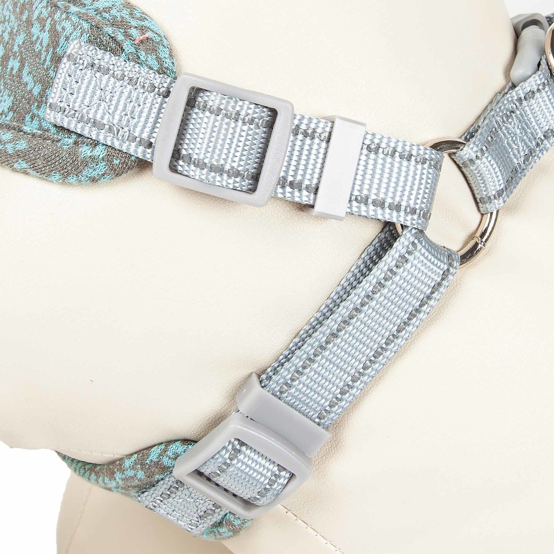 The Pet Life 'Fidomite Mesh Reversible and Breathable Adjustable Dog Harness w/ Designer Bowtie features a blended exterior shell with complete breathability that is reversed with breathable and comfortable accented Micro-mesh for premium comfort that gently hugs the body. The Harness features well-coordinated exquisite matching bowtie that sits above a stunning Gray and Blue patterned body. The back of the harness features adjustable Mesh and Nylon straps with dual stainless steel hooks that connect to any leash. The Swanky Swag harness was specially engineered to limit stress around the stomach by placing light stress around the sternum for proper comfort. Features reinforced stitching for durability. Available in Multiple Sizes.