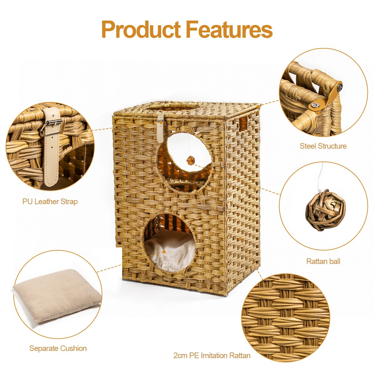 Rattan Cat Litter,Cat Bed with Rattan Ball and Cushion