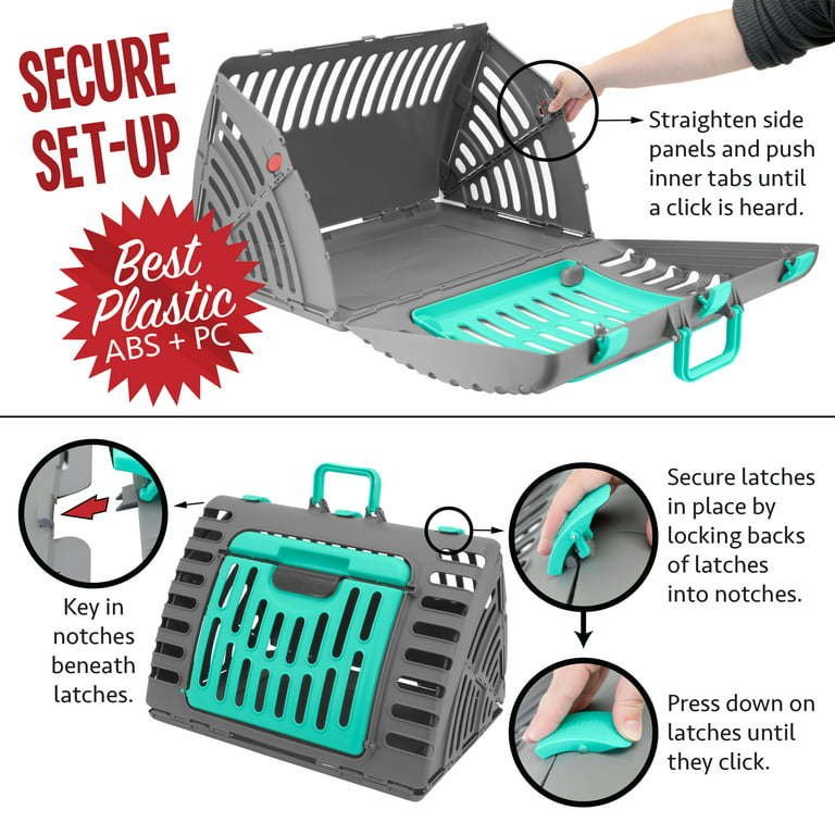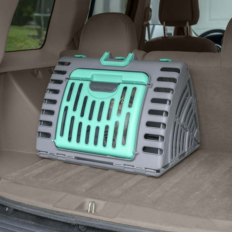 Pets crave a place to call their own so why are so many cat carriers essentially dog crates scaled down the kitty city extra large cat carrier solves the problem with a design focused on keeping cats calm and collected while they're on the go, all while being simple to assemble and stow for you. Better yet, the unique tent-like shape creates a naturally cozy haven for your cat all with plenty of grills and vents on all sides so that your pet can feel comfortable surveying her surroundings. It's easy to clean once the trip is over thanks to the door's wide design. Plus comfort grip handles make it a more pleasant experience for you as well.Key Features: FOLDING CAT CARRIER Folds down neatly for storage in your closet or on a convenient shelf, yet set-up in a cinch whenever you need to travel with your feline sidekick. it's quick, cozy carrying for on the go! Extra Large Opening with removable door makes cats feel comfortable walking into the carrierDURABLY BUILT The plastic and steel construction offer a long life of use, and the sturdy door has a single-motion door lock – it'stays securely shut, but opens easily for you. CAT COMFORT IN MIND The unique, triangular shape makes for a cozy lounging area for your cat, yet it has plenty of built-in slats and vents so your pet always has a complete, calming view if his surroundings. Easy to clean. Unique shape offers a cozy lounging areaCarrier measures: 23.12' L x 18.75' W x 17.25' HSportPet Designs 24' waterproof pet bed fits this XL cat carrier.Holds one or more cats up to 35 lbs