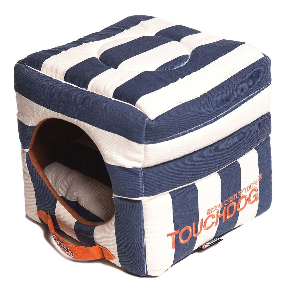 Home > Touchdog Polo-Striped Convertible and Reversible Squared 2-in-1 Collapsible Dog House Bed